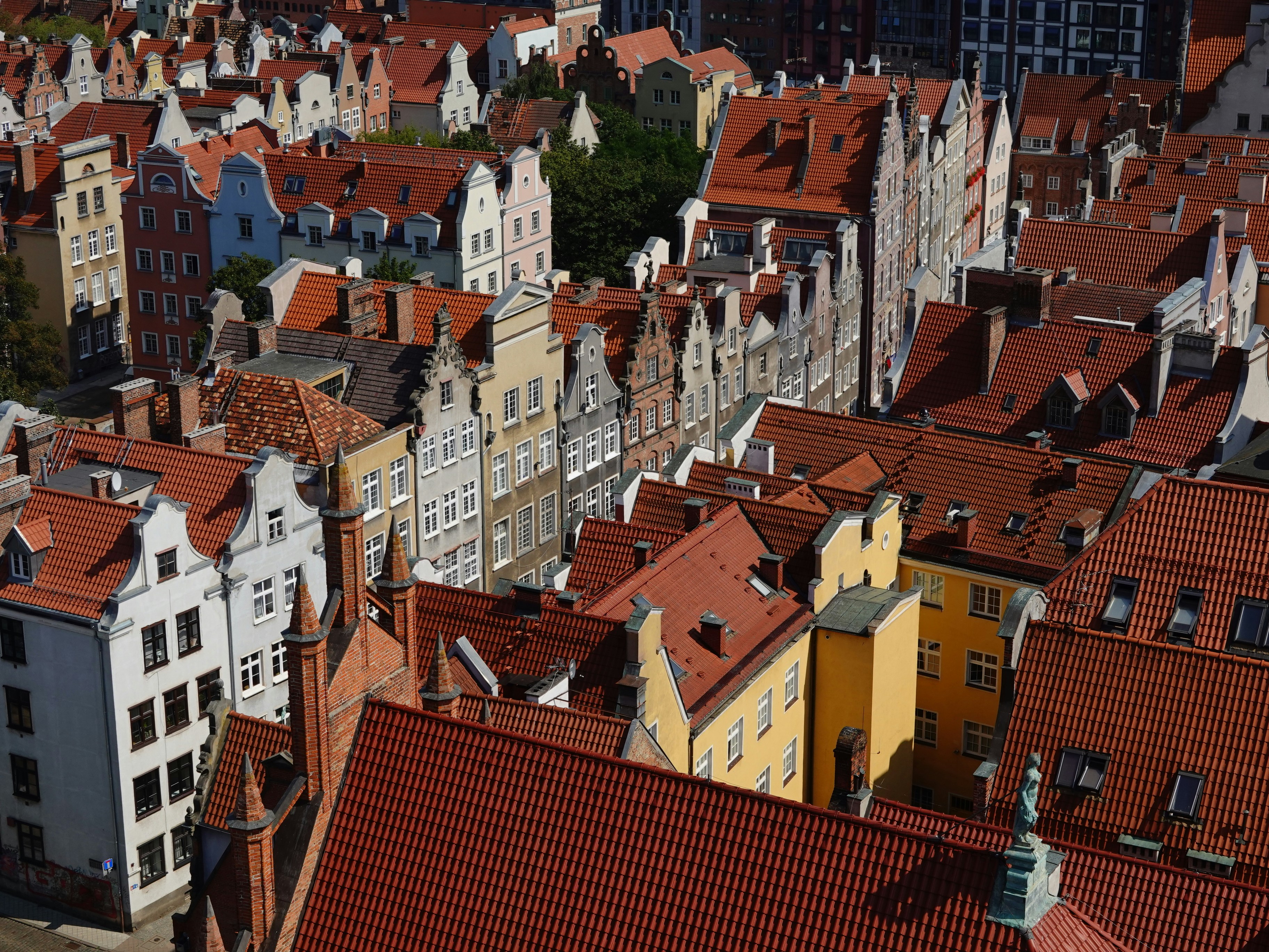 Wer eine Pause vom Stadtbummel braucht, findet im Oliwa-Park eine malerische Ruhezone. Der angelegte Landschaftsgarten mit seinem barocken Palmenhaus und dem berühmten Orgelkonzert in der Kathedrale ist ein Geheimtipp. Für den besten Blick über die Stadt steigt man auf den Turm der Marienkirche – eine der größten Backsteinkirchen der Welt. Von hier aus eröffnet sich das ganze Panorama: die roten Dächer der Altstadt, die weitläufige Hafenbucht und im Hintergrund die Ostsee, die Gdańsk seit Jahrhunderten prägt.