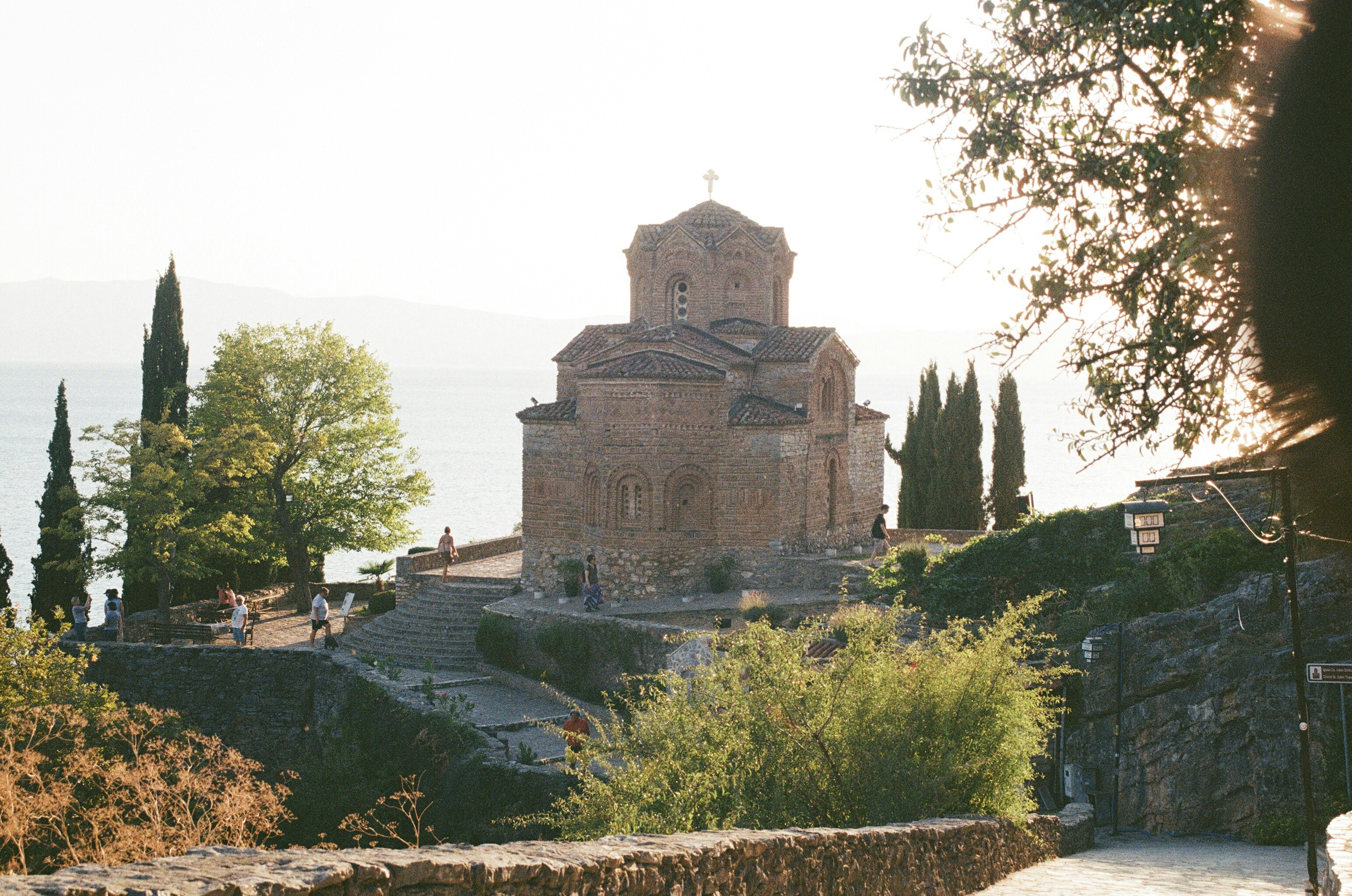 Eines der Juwelen Ohrids ist die dem Heiligen Kliment von Ohrid gewidmete Kirche St. Pantelejmon auf dem Plaošnik-Hügel. An dieser Stelle gründete der Heilige Kliment, ein Schüler der Heiligen Cyril und Method, im 9. Jahrhundert die erste slawische Universität und verbreitete die kyrillische Schrift. Die heutige Kirche wurde originalgetreu auf den Fundamenten der byzantinischen Basilika rekonstruiert. Im Inneren können Besucher durch Glasböden die freigelegten archäologischen Schichten sowie atemberaubende Mosaike bestaunen. Der Ort strahlt eine tiefe Ruhe und spirituelle Bedeutung aus, die spürbar macht, warum Ohrid ein so entscheidendes Zentrum für die slawische Literacy und orthodoxe Christenheit war.